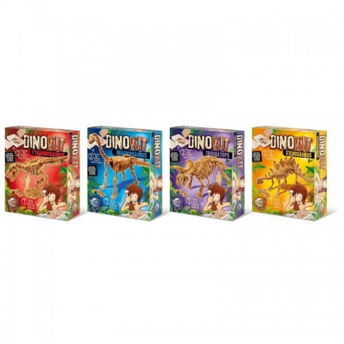 Conține: 1 bloc fosil, 1 ciocan, 1 daltă, 1 pensulă, 1 burete, 1 lingură, 1 tavă mică, 1 pachet de ipsos.