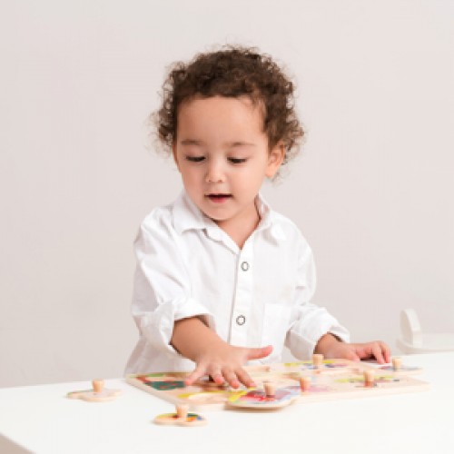 Acest puzzle din lemn de la New Classic Toys face parte din linia de produse educaționale care vizează construirea, stivuirea, sortarea, rezolvarea și numărarea. Jocul și învățarea merg perfect împreună cu colecția de jucării „Educaționale” de la New Classic Toys.