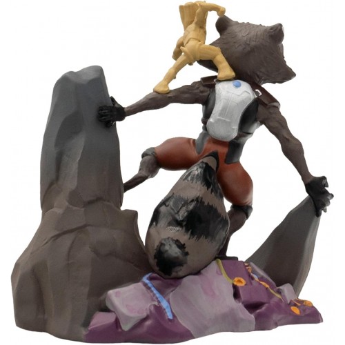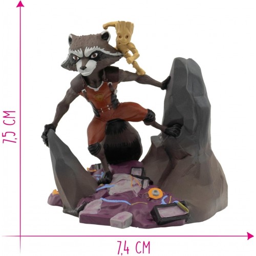 Figurina emblematică Marvel Rocket cu Groot vine ca o figurină de colecție detaliată, cu pictură de înaltă calitate. Cu o înălțime de aproximativ 8 cm și o bază detaliată, figurina oferă multă distracție de colecționare și joacă - ideală pentru copiii cu vârsta de 3 ani și peste, fanii Marvel și colecționarii (adulți).