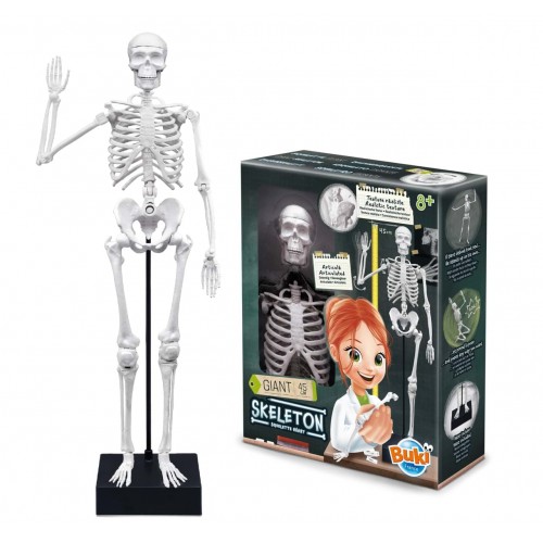 Conține: 1 schelet de 45 cm, 10 radiografii, 1 suport de montare a scheletului, etichete, instrucțiuni ilustrate in culori
