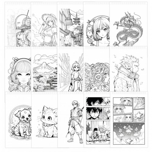 O carte manga de colorat sau de creat cu 8 markere pe bază de alcool. Puteți colora direct în carte sau puteți plasa foaia de colorat pe tableta dvs. 3 în 1 (vândută separat).