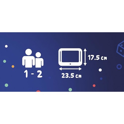 Continut cutie: o tableta, 1 zar,  2 pixuri, separator de ecran din hartie, 10 planșe cu doua fețe pentru cele 20 de jocuri.