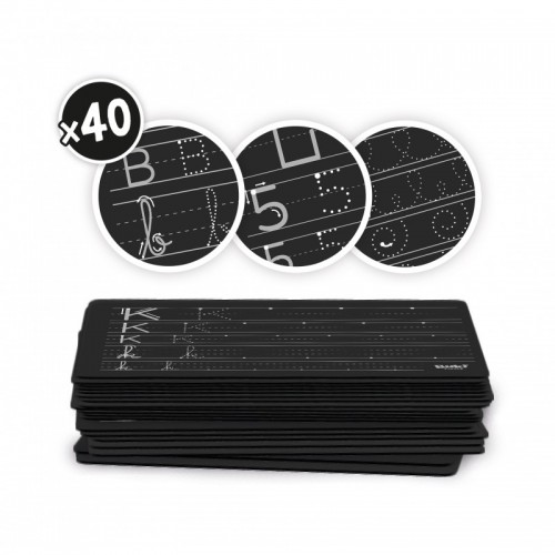 O tabletă cu ecran LCD pentru a învăţa să scrieţi literele alfabetului cu majuscule sau cu litere mici de mână, precum şi cifrele de la 0 la 9. În plus poţi exersa să trasezi linii curbe sau drepte. Copilul aşează o foaie sub tableta şi exersează trasând liniile pe fiecare foaie. Ştergeţi prin simplă apăsare a butonului. Scrieţi folosind stylusul ca un stilou normal. Adăugaţi mânerul pentru a învăţa să ţineţi corect stiloul. Acest mâner poate fi folosit şi pe un stilou normal.