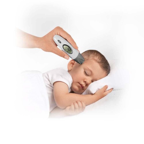 Termometru digital ce măsoară într-o secundă temperatura corpului pe tâmplă sau în ureche, temperatura oricărui obiect între 0 și 100 °C (biberon, mâncare, apă, etc.) sau temperatura ambientală