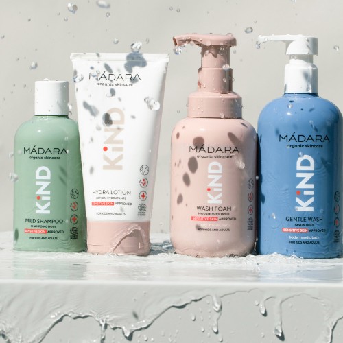 Conform cercetărilor interne, produsele Mádara dedicate copiilor erau folosite în proporție de 30% de către adulți, fiind alese datorită formulelor foarte blânde, cu risc minim de reacții alergice. Astfel s-a născut KIND – ca răspuns la nevoia de simplitate și minimalism.
