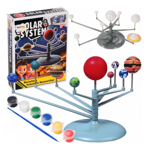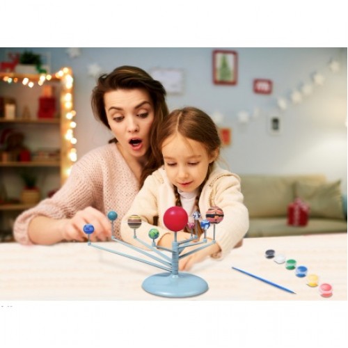 Set creativ - Sistemul solar pentru pictat, cu accesorii incluse (vopsele, pensula, vopsea fosforescenta)